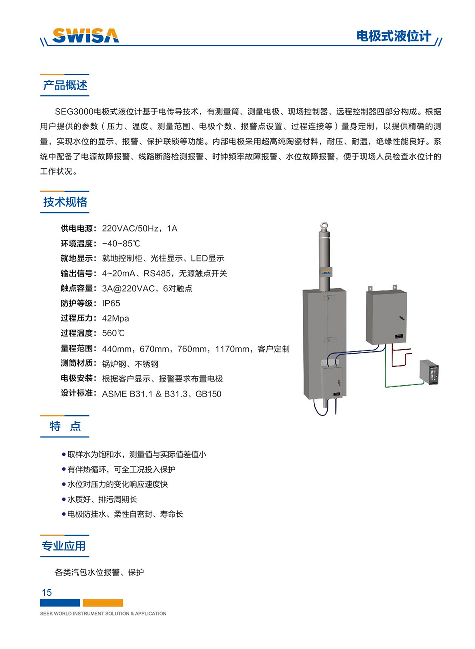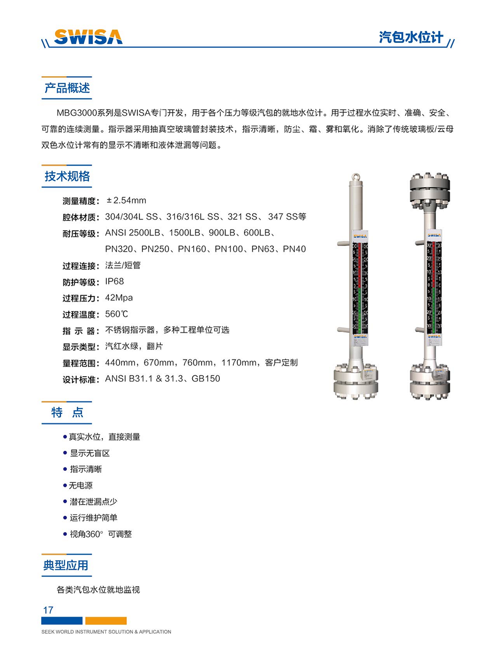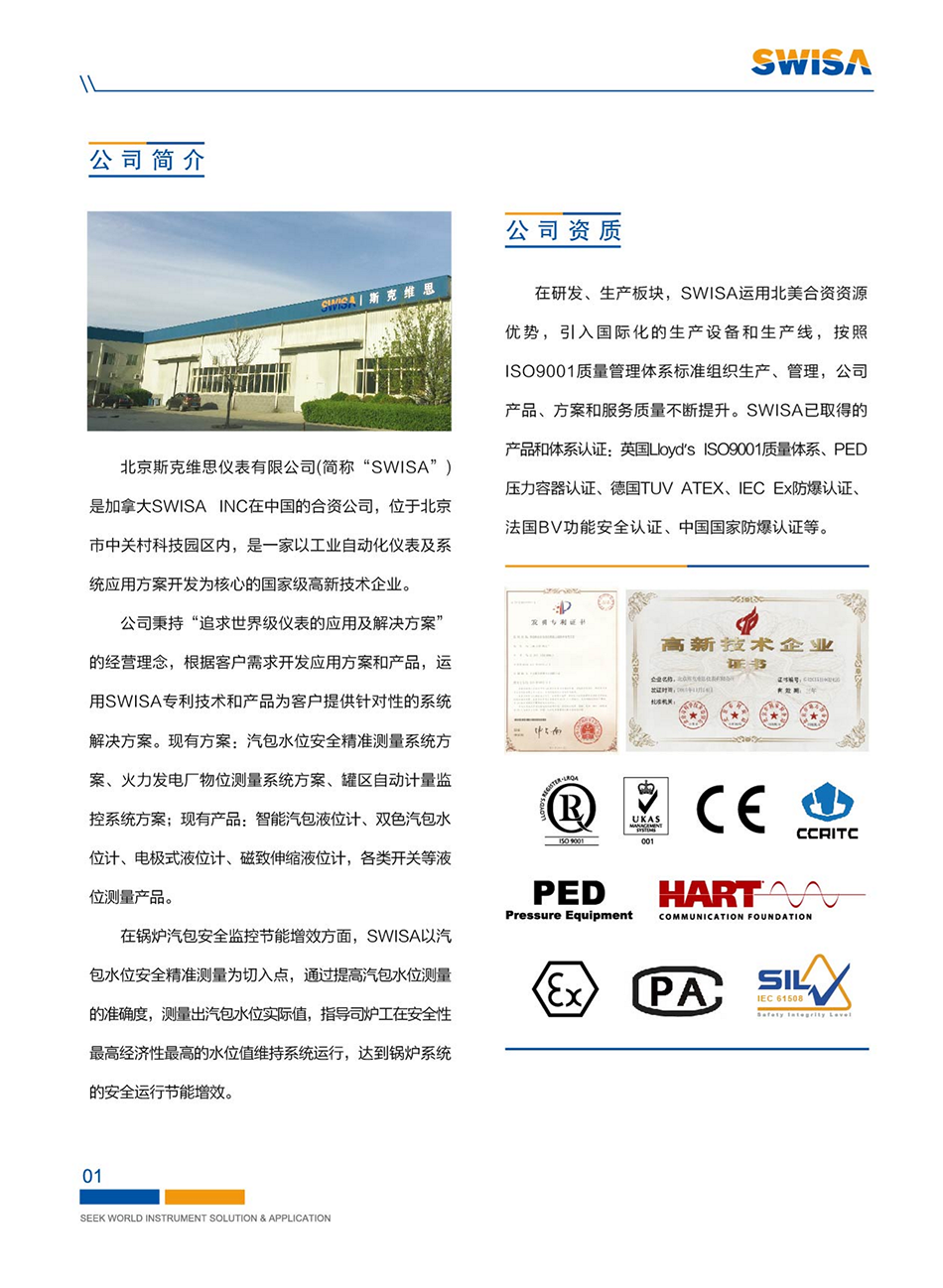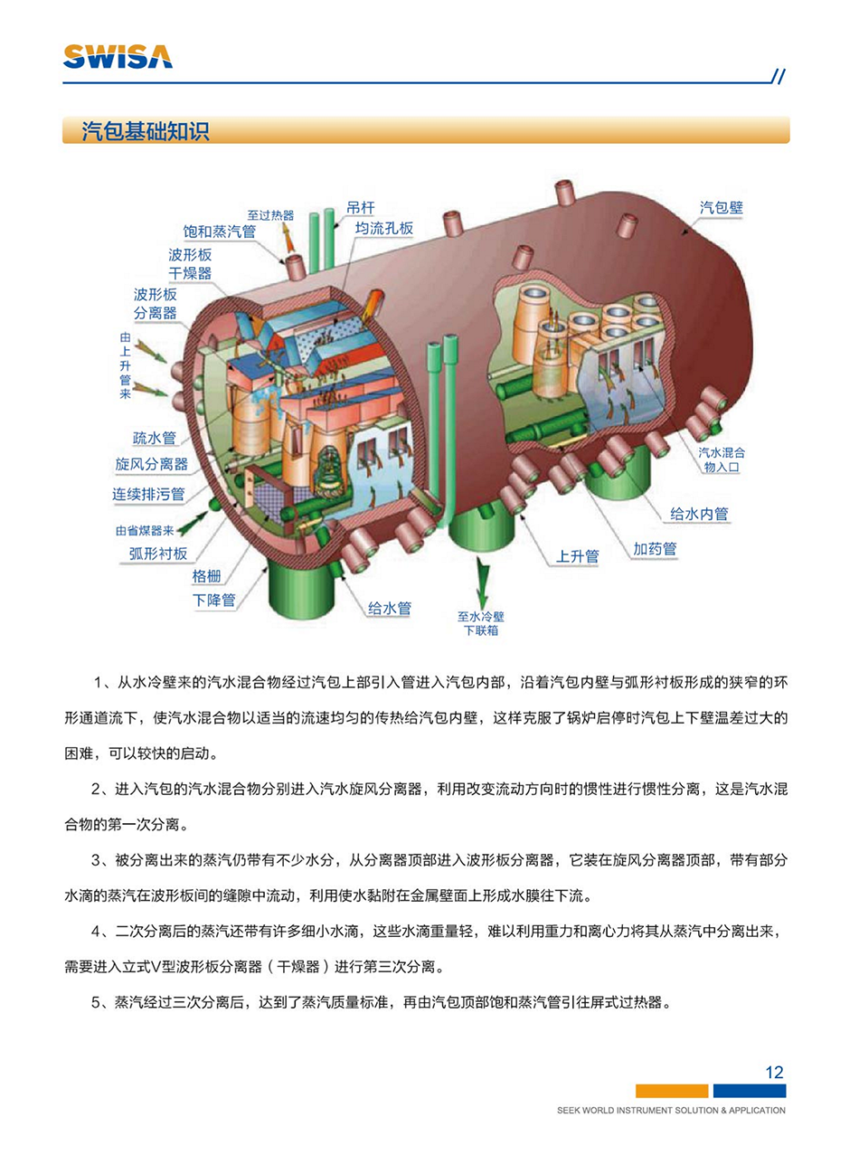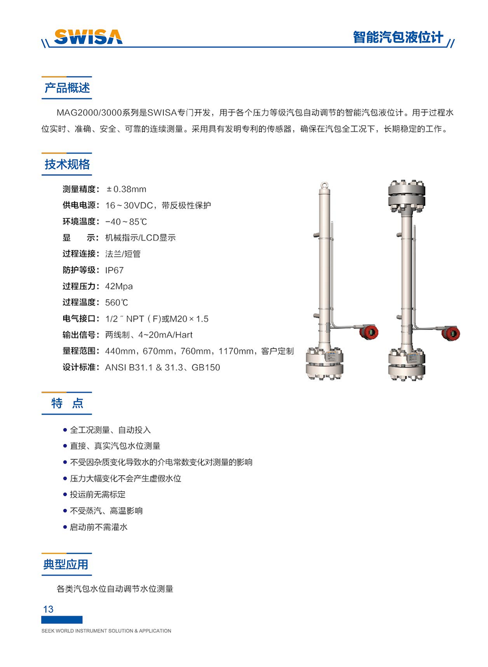 SWISA提供完整的汽包水位安全精準測量系統,系統分為三個層次,從不同的維度監測、控制汽包水位。系統采用的各類水位計,均解決了外部測量筒取樣水溫度與汽包內飽和水溫度偏差而造成的水位測量數據偏離真實值的問題。