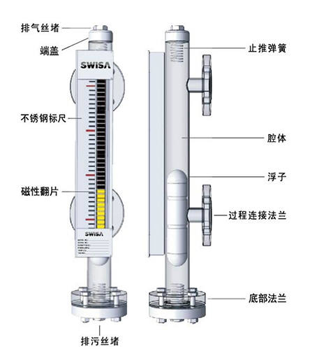 SPI磁翻板液位計(jì)采用模塊化設(shè)計(jì),結(jié)構(gòu)簡單,由三部分組成:
