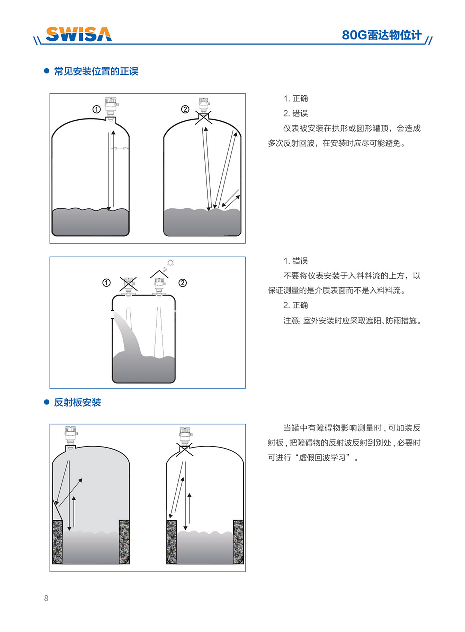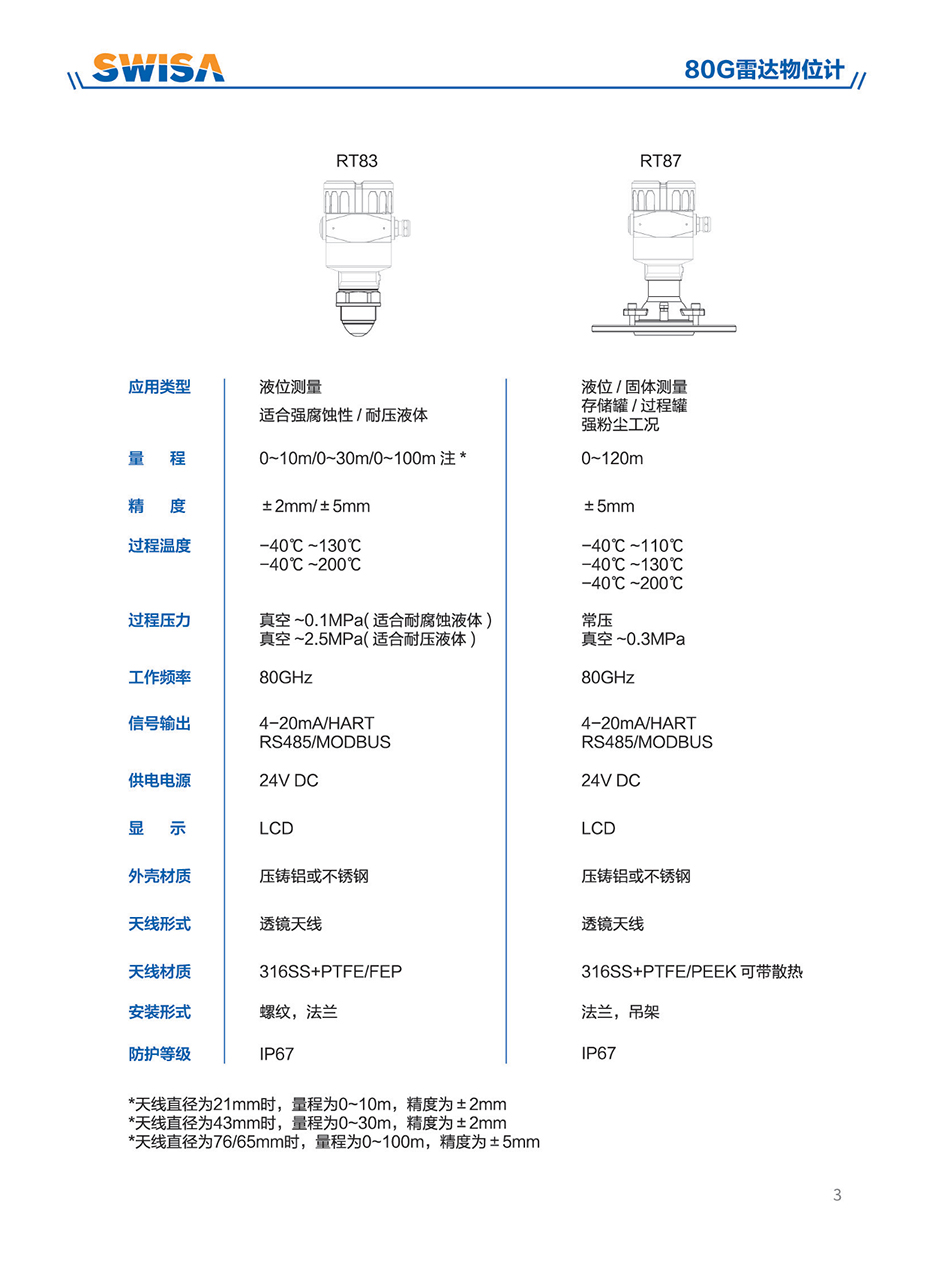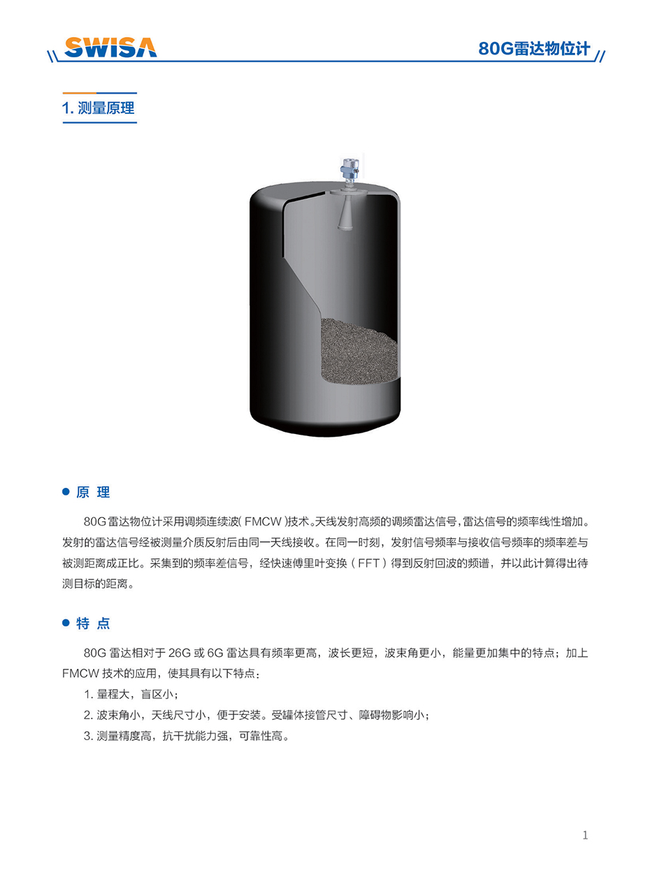 80G雷達物位計采用調頻連續(xù)波(FMCW)技術。天線發(fā)射高頻的調頻雷達信號,雷達信號的頻率線性增加。發(fā)射的雷達信號經被測量介質反射后由同一天線接收。在同一時刻,發(fā)射信號頻率與接收信號頻率的頻率差與被測距離成正比。采集到的頻率差信號,經快速傅里葉變換(FFT)得到反射回波的頻譜,并以此計算得出待測目標的距離。