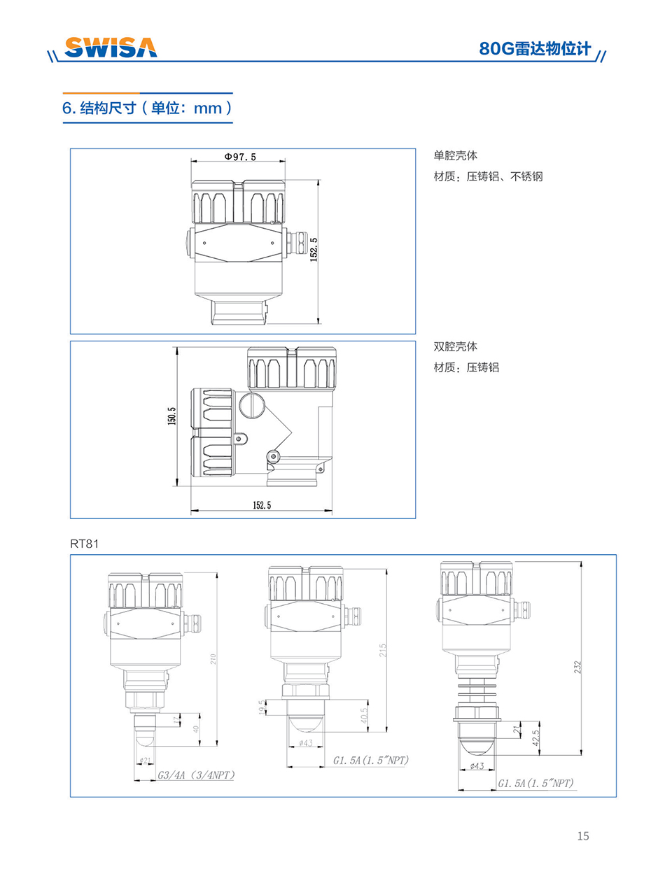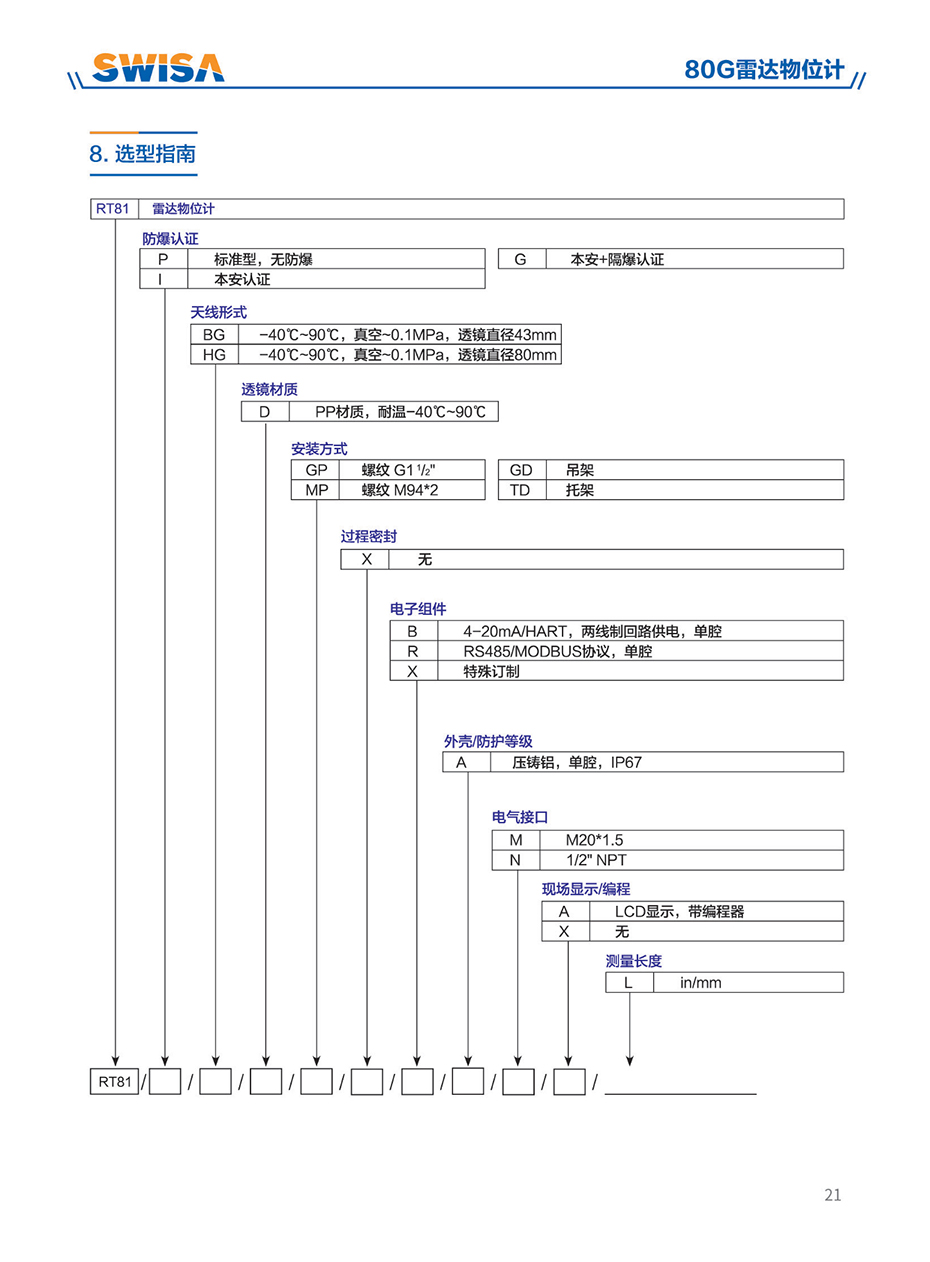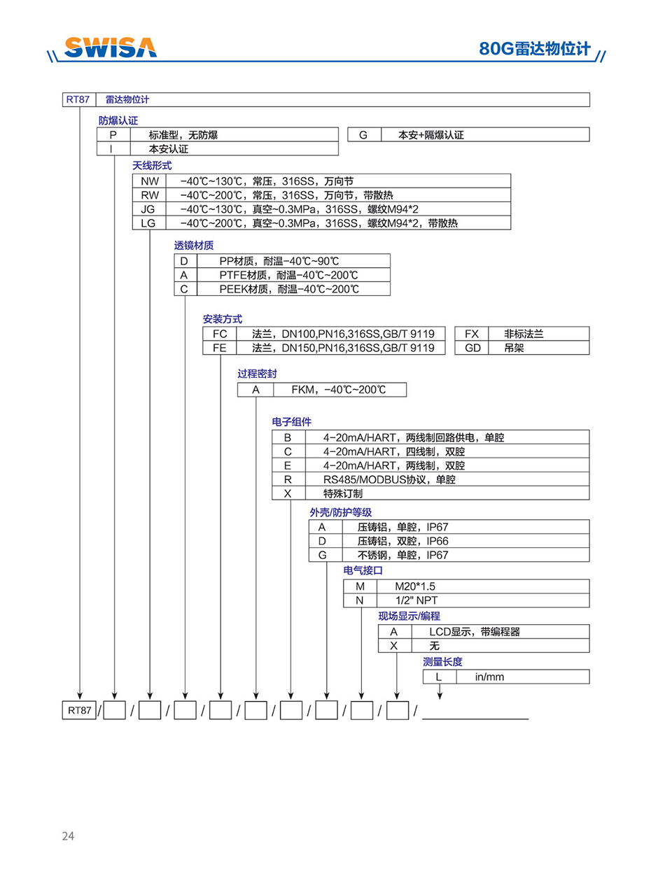80G雷達物位計采用調頻連續(xù)波(FMCW)技術。天線發(fā)射高頻的調頻雷達信號,雷達信號的頻率線性增加。發(fā)射的雷達信號經被測量介質反射后由同一天線接收。在同一時刻,發(fā)射信號頻率與接收信號頻率的頻率差與被測距離成正比。采集到的頻率差信號,經快速傅里葉變換(FFT)得到反射回波的頻譜,并以此計算得出待測目標的距離。